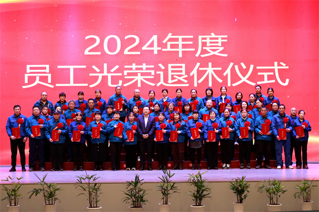 會(huì)上,為2024年度退休的員工舉辦了光榮退休儀式。公司黨委委員、紀(jì)委副書記、副總經(jīng)理孫玉濤宣讀了2024年度退休員工名單;黨委書記、董事長盛守祥為退休員工代表頒發(fā)榮譽(yù)證書;退休員工張炳營代表67位退休員工作退休感言。