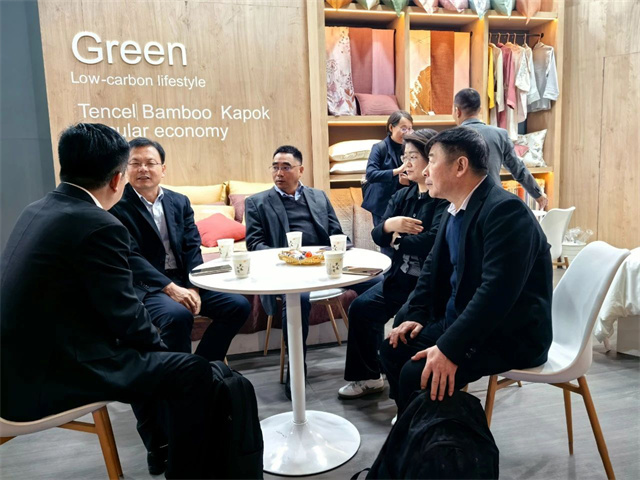 展會(huì)首日,中國(guó)紡織工業(yè)聯(lián)合會(huì)副會(huì)長(zhǎng)楊兆華等領(lǐng)導(dǎo)專程到華紡股份展位參觀指導(dǎo)。領(lǐng)導(dǎo)們認(rèn)真聽取了家紡公司總經(jīng)理成汝海對(duì)家紡產(chǎn)品的介紹,仔細(xì)觀看了解了各類展品。楊兆華副會(huì)長(zhǎng)對(duì)華紡股份有限公司在產(chǎn)業(yè)升級(jí)、產(chǎn)品結(jié)構(gòu)調(diào)整方面取得的成績(jī)給予了充分肯定,希望公司繼續(xù)加大研發(fā)投入,提升產(chǎn)品科技含量和附加值,進(jìn)一步加強(qiáng)品牌建設(shè),提高中國(guó)家紡產(chǎn)品在國(guó)際市場(chǎng)的知名度和影響力。